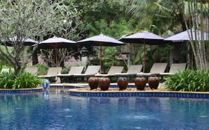 Sritandorn Restaurant serves the daily buffet breakfast, while Kantamas Restaurant features a selection of Thai and international dishes, along with outdoor barbeque food. Krairas Restaurant offers an à la carte menu. It also has a library and an internet corner. The pool bar offers light snacks, cocktails and drinks.
