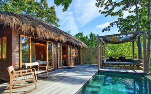 Комфортные и уединенные виллы располагают просторной гостиной зоной на открытом воздухе и собственной ванной комнатой. Все они обставлены деревянной мебелью в загородном стиле и укомплектованы телевизором, мини-баром и феном.