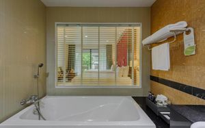 Просторные номера отделаны декоративными элементами приятных оттенков синего и темного дерева. Из окон открывается вид на бассейн. В число удобств входят бесплатный Wi-FI, телевизор с плоским экраном и кабельными каналами, а также большая ванная комната с ванной и отдельным тропическим душем.
