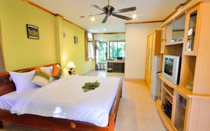 Отличный отель. Очень зеленая территория, с фруктовыми деревьями. По утрам поют птички. В трех минутах улица с кафе и магазинчиками. Есть даже кафе с русской кухней (готовят очень вкусно). Собственная веранда. Отзывчивый персонал, можно обратиться по любым вопросам. Приехали позже заявленного времени, наша бронь была уже распечатана. Заселили мгновенно.
