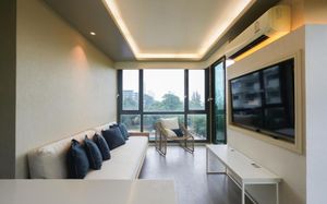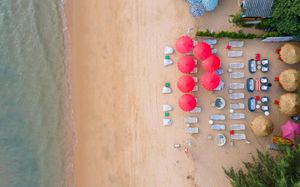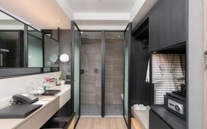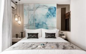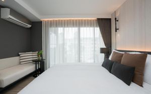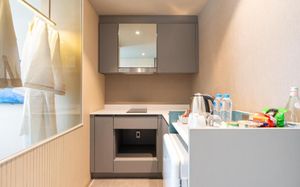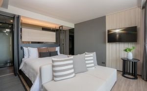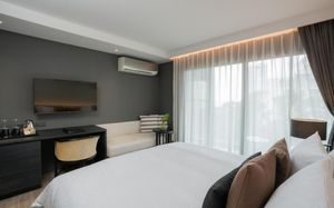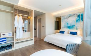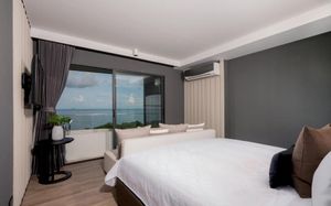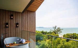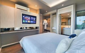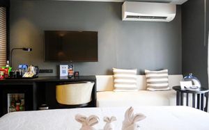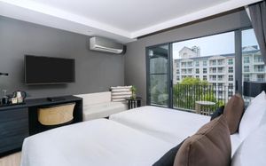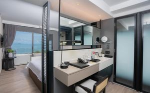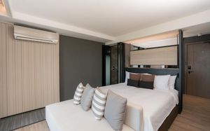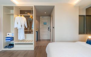 Отель соответствует описанию. Приехали в 9:30, сказали подойти к 12-ти, и мы сразу на пляж + приветственный напиток в баре на пляже по талонам. Пляжные полотенца брали на ресепшн. С ресторана выход на пляж через два мостика. Пляж у отеля маленький, шезлонги стоят впритык, мы хотели их вынести чуть подальше, нам не дали, сказали, что это граница другого отеля. Потом загорали на песочке, что тоже хорошо. Море мутноватое, но напоследок порадовало (перед отъездом) - было чистое. С пляжа хорошо выходить и омывать ноги теплой водой из душа перед мостиком. После мостика, если с пляжа идти, есть душ и туалет. Везде чисто. Мы заказывали делюкс (где-то в описании я видела, что делюксы выходят окнами на внешнюю сторону. Дали номер рангом якобы повыше (подарок букинга) с кухней, с плитой, но без кухонных принадлежностей. Наверно, если бы мы попросили, нам бы их дали. Плита не работала. Микроволновки нет. В номере тапочки (комнатные и для душа), халаты (удобно одевать для бассейна), мыльные принадлежности (шампунь с кондиционером+лосьон для тела в душевой и мыло+лосьон над раковиной + щетки с зубной пастой, палочки и ватные диски, шапочка для душа, есть фен, мы не пользовались + душ вместо биде). Недалеко от отеля, если идти вправо, есть 7Eleven, где можно купить симку, и банкомат. На Сукхумвит хороший обменник. Понравился завтрак: есть супы вегетарианский и мясной, нарезка сыр и колбасы, сосиски, овощи, тут же стоят соусы, макароны разных видов, с овощами, с яйцами и без (каждый раз менялось), яйца разного приготовления, мясо pork и chiken (немного жестковато) с овощами и без, выпечка, йогурт, фрукты (в компоте и в нарезке) и вкусный кофе из кофемашин, чай. На последнем этаже (2-й корпус) хороший бассейн с красивым видом, несколько шезлонгов и искусственная травка, на которой тоже можно загорать, заниматься йогой. В 1-м корпусе - джакузи, итальянский ресторан, место для пати и еще один бассейн. Есть фитнес зал хороший со всем необходимым (и в 1-м корпусе - поменьше).