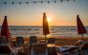 Территория пляжа: муниципальный песчаный пляж, песчаный пляж, полотенца, ше...