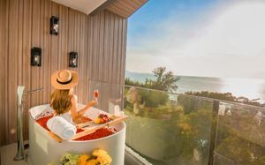 Отель, инфраструктура, номера, ванна на балконе, бассейн на крыше