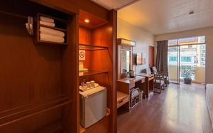 Отель давно морально устарел.Отели этой категории стоят процентов на 30 дешевле.К сожалению не во всех отелях в центре есть номера с двумя кроватями,поэтому выбор несколько ограничен.В номерах по необходимости сделан ремонт,в частности поменяны ванны.Уборка по тайским меркам нормальная))Смена полотенец каждый день,постельного белья 1 раз в 3 дня(все чистое,без пятен)Скромные завтраки.И не было ни одного не штопанного пляжного полотенца.Кондиционер работает очень даже хорошо,но терморегулятор не очень,поэтому в номере холодно.Приходилось то включать,то выключать его(кондиционер)