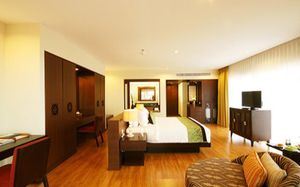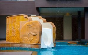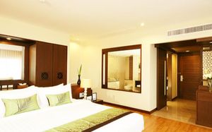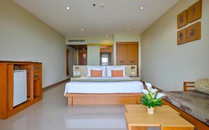 Море мутное, как и везде в Патайе, пляж узкий, но в этом и преимущество отеля, искупался на море и идешь загорать в райское зелёное местечко, где птички поют . В ванной щель между дверью и полом, пол частенько заливало, потом стали приспосабливаться. В целом отель не новый, но ухоженный.