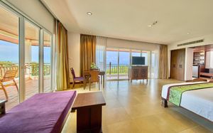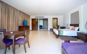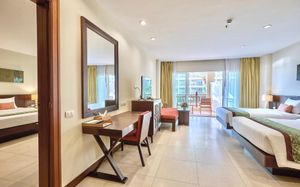 Великолепный отель и большой номер! Чисто, каждый день уборка. Свежая питьевая вода каждый день по 3 бутылочки. Завтраки отменные, вкусные, большое разнообразие блюд. Есть отдельные комнаты для питания с кондиционером. Да и в зале много вентиляторов. Так же можно позавтракать на свежем воздухе. Бассейны большие 2 шт., так же есть детский бассейн. В бассейне на нижнем уровне есть бар с алкогольными напитками (платно). Территория отеля чистая и регулярно убирается.