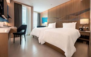 Каждый из 236 номеров отеля оснащен телевизором с кабельными каналами, принадлежностями для чая/кофе и электрическим чайником, а в некоторых из них обустроена гостиная зона. Из ряда номеров открывается вид на море или город. В числе стандартных удобств всех номеров — собственная ванная комната с душем, биде, халатами, тапочками, бесплатными туалетно-косметическими принадлежностями и феном.