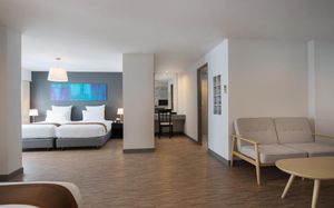 Отдыхали в марте 2025 года . Семья 2 взрослых +2 ребенка (5 и 11 лет ) . Номер большой и удобный ) есть гладильная доска , холодильник , микроволновка ) .