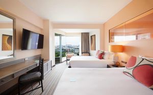 В расположенном всего в нескольких минутах ходьбы от торгового центра Central Festival Pattaya Beach отеле The Bayview Pattaya можно провести превосходный тропический отпуск. К услугам гостей 6 ресторанов и 2 открытых бассейна. На территории отеля предоставляется бесплатный Wi-Fi. Поездка от отеля Bayview до центра Бангкока и аэропорта Суварнабхуми занимает 1,5 часа. Автомобиль можно оставить на бесплатной парковке. Номера отеля Bayview Pattaya обставлены мебелью из темного дерева и оснащены телевизорами с плоским экраном и кабельными/спутниковыми каналами, а также принадлежностями для чая/кофе. Предоставляется бутилированная вода. В отделанных мрамором ванных комнатах с установлены ванна и душ. За дополнительную плату можно пользоваться мини-баром. Гости могут потренироваться в фитнес-центре. На близлежащим пляже организуются занятия дайвингом и катание на гидроцикле. Кроме того, можно пройти уроки тайской кухни и карвинга из фруктов. В ресторане Garden Terrace Café подают блюда интернациональной кухни и ежедневный завтрак «шведский стол». Напитки можно заказать в баре Exotica и в баре у бассейна.