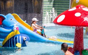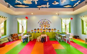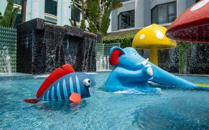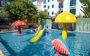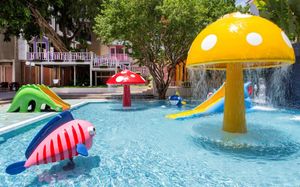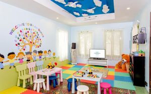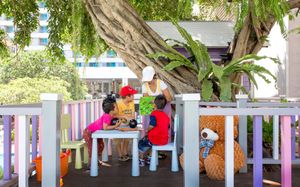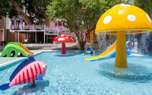 Детская кровать, детские стульчики в ресторане, игровая площадка, бассейн, ...