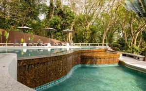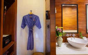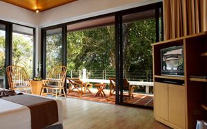 Номера располагают кондиционером, доступом в интернет, спутниковым телевидением и собственной террасой с видом на океан или лес.