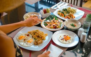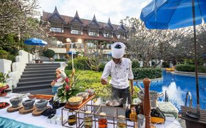 В ресторанах подают блюда тайской и интернациональной кухни. В барах у бассейна предлагаются напитки.