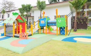 Большая территория, рядом с морем. В шаговой доступности кафе и магазины. Разные развлечения для детей
