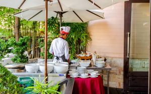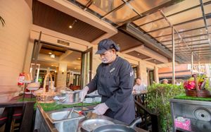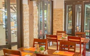 В ресторане подают блюда тайской и интернациональной кухни. Желающие могут заказать коктейли в баре и провести время у бассейна.