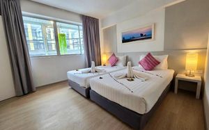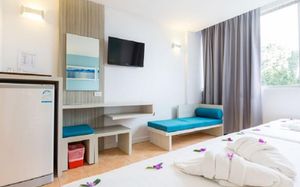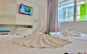 Отель бюджетный, чистый, персонал приветливый. Близко к пляжу. В 5 минутах ходьбы. Рядом вся инфраструктура, ночные рынки. Одни ++++++++.