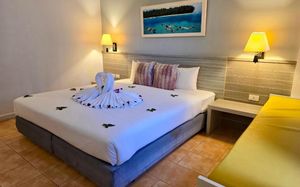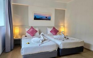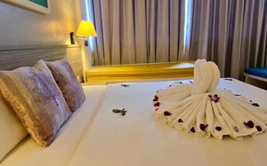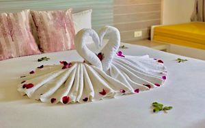 Бөлмелері таза, құрғақ, барлық затты күнде ауыстырып отырады аппақ орамал, төсек. Біз таңғы ас қана алдық күнделікті таңғы ас, жағалауға жақын орналасқан барлығы қолжетімді жерде. Қарапайым отель.