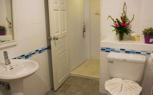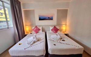 Отель находится в 2 мин. от пляжа Карон. На завтрак каждый день 1 разное тайское блюдо, + стандартные- яйца( все вариации) рис, сосиски, ветчина, салаты, арбуз+ананас, тосты, масло, джем. В общем голодными не останетесь) На против отеля сразу 7eleven, обменики, бары, очень советую Саpri Noi. Те кто пишут, что музыка мешает спать, ну не знаю даже, для нас было плюсом открыть окно и наслаждаться этим вайбом) тем более с 12-1 уже закрывались и была тишина. В номере есть фен, чайник, кофе и воду давали каждый день как и уборка. Да депозит берут 100$, но как сдали номер без проблем вернули. Персонал приветливый. Отдых прошел отлично. Кому нужны бассейны и територии то берите Шугар Марину через дорогу. А если вы как и мы только приходите поспать это лучший вариант цена - качество. Главное все рядом! Хорошего всем отдыха!