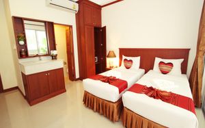 У нас был уютный смежный номер (две одинаковые комнаты, каждая со своим санузлом и балконом). В отеле много оригинального декора из дерева в тайском стиле. Очень хорошая уборка. Отзывчивый персонал. Хорошие завтраки (не шведский стол, а по меню три вида завтраков).