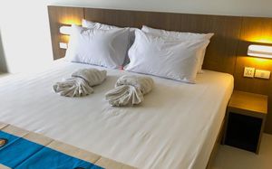 Так как отели почти все находятся через дорогу от пляжа, нам не повезло с номером. Окна выходили на проезжую часть. И это шумно очень. Особенно ночью. Персонал готов был помочь, но, к сожалению для нас, все номера были заняты. Это единственный минус. Но и к нему можно привыкнуть)