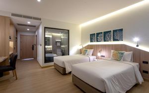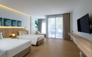 Отель просто отличный, в номере идеальная чистота и каждый день пополняли все расходники (в том числе зубные щетки, ватные палочки и т.п.). У нас был номер в 7 корпусе с выходом в бассейн, поэтому ребенок весь день проводил на горках, а я удобно следила за ним из номера. Персонал очень внимательный, нам было очень комфортно отдыхать. Рядом с отелем есть рестораны, 7eleven и массажные салоны, в 5 минутах от отеля пляж.