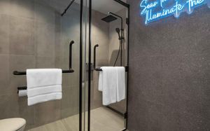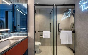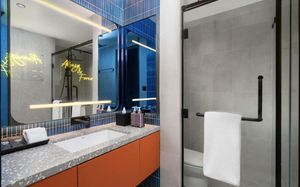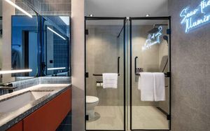 Низкая раковина Туалет с поручнями Подходит для гостей в инвалидных креслах Лифт для доступа к верхним этажам