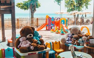 Детская кровать, детские стульчики в ресторане, игровая площадка, бассейн