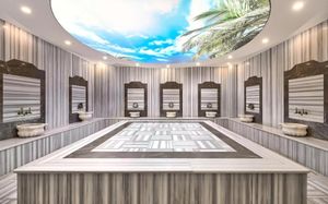 Бассейн 1 — крытый Бассейн 2 — открытый Раздевалка со шкафчиками в фитнес-центре / спа-салоне Фитнес Массаж всего тела Массаж головы Массаж ног Массаж спины Пакеты услуг спа/велнесс Спа-лаундж/зона для релаксации Парная Спа-процедуры Обертывание Пилинг для тела Уход за телом Укладка Окрашивание волос Стрижка Педикюр Маникюр Уход за волосами Макияж Уход за лицом Косметические услуги Зонты от солнца Шезлонги/пляжные кресла Общественные бани Турецкая баня Массаж Спа и оздоровительный центр Фитнес-центр Сауна