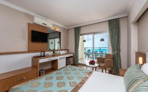 Концепция "Ультра все включено" включает безалкогольные и алкогольные напитки местного производства (вино, водка, пиво, ракы), некоторые импортные напитки Платно: некоторые местные и импортные напитки, свежевыжатый сок Концепция действует с ужина в день заезда и заканчивает действие обедом в день выезда из отеля Все заведения/услуги на открытом воздухе работают в зависимости от погодных условий