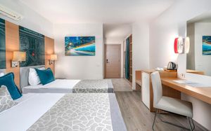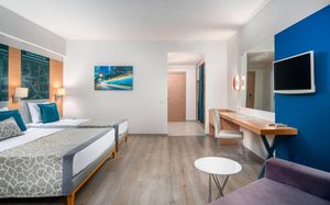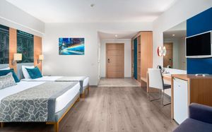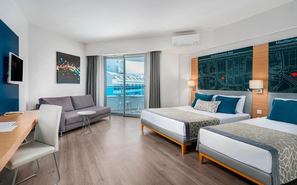 В каждом номере есть кондиционер и телевизор со спутниковыми каналами, в том числе музыкальными, гостиная зона и балкон. Двухместные и семейные номера рассчитаны на проживание до 4 человек.