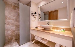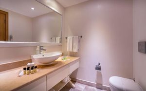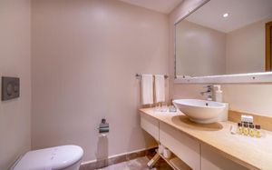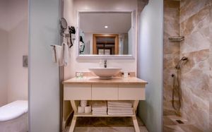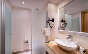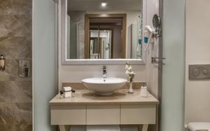 Комментарий к размещению: Номера для людей с ограниченными возможностями: В общей сложности 5 номеров. В ванной комнате установлена кнопка вызова оператора в случае экстренной ситуации. Душ/ туалет. Балкон с видом на окрестности. Технические характеристики: ширина дверей 80 см, ширина балконных дверей 85 см, ширина дверей лифтов 80 см, ширина ванных дверей 80 см. Для людей на инвалидных колясках удобный доступ на ресепшн, в основной ресторан, к бассейну, и на пляж. (Максимальное размещение: 2 взрослых). Аренда инвалидных колясок под депозит 50 $ / 50 Euro.