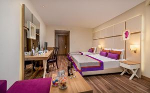 Красивый и современный отель для всех категорий гостей. Гости могут пользоваться территорией отеля Delphin Botanik Hotel & Resort (рестораны и бары у каждого отеля свои). Расположен в 90 км от аэропорта Антальи, в 34 км от Алании.