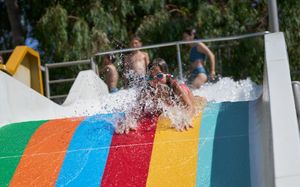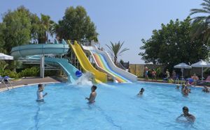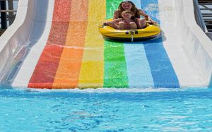 2 открытых бассейна с пресной водой, без подогрева, площадь 500 и 200 кв.м 3 водные горки, без подогрева, работают 10:00 - 12:00 / 14:00 - 17:00