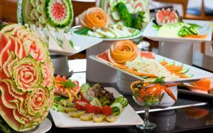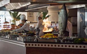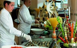 Рестораны a la carte/шведский стол:Итальянский ресторан и Ресторан морепродуктов Часы работы 19:30-22:00 Необходима предварительная резервация Возможно одно бесплатное посещение одного из ресторанов (при проживании не менее недели)