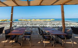 Территория пляжа:Собственная часть на общественном песчано-галечном пляже (50 м от отеля, через дорогу)