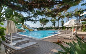 Отель с небольшой ухоженной территорией и хорошим пляжем. Расположен в мест...