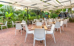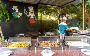 В ресторане отеля накрывают "шведский стол" из разнообразных блюд. Кроме того, у бассейна работает снэк-бар. Гости могут также могут заказать прохладительные напитки в баре отеля.