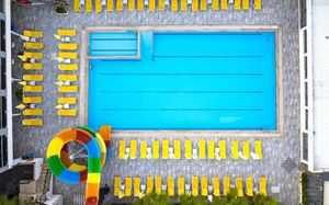 1 открытый бассейн с пресной водой (без подогрева), 300 кв.м 1 водная горка, часы работы 10:00 - 12:00 / 15:00-16:00