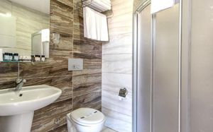 Низкая раковина Высокий туалет Туалет с поручнями Подходит для гостей в инвалидных креслах