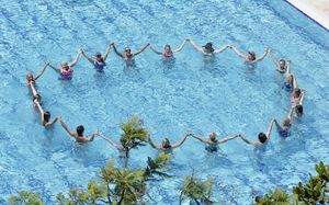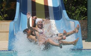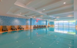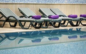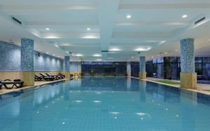 2 открытых бассейна, без подогрева, площадь 400 кв.м и 200 кв.м, часы работы 07:00-19:00 1 крытый бассейн с подогревом (апрель и октябрь), площадь 160 кв.м, часы работы 09:00-18:30 3 водные горки, часы работы 10:00-12:00 и 14:00-17:00