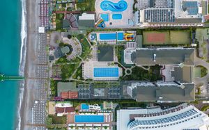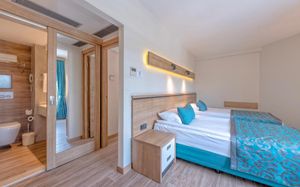 The hotel perfectly combines relaxation and entertainment. The outdoor swimming pool, sun terrace, and water slides provide fun for both adults and children. Guests can unwind on the private beach, soak up the sun, or enjoy activities such as beach volleyball.