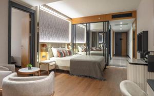 Mylome Luxury Hotel & Resort - Ultra All Inclusive — это отель в городе Окурджалар, в 400 м от такой достопримечательности, как Пляж Окурджалар. Среди удобств — открытый бассейн, фитнес-центр, сад и бесплатная частная парковка. В числе удобств — детский клуб и ресторан, а также аквапарк и терраса. Гости могут обратиться к сотрудникам круглосуточной стойки регистрации, воспользоваться трансфером от/до аэропорта или доставкой еды и напитков, а также подключиться к бесплатному Wi-Fi. В номерах Mylome Luxury Hotel & Resort - Ultra All Inclusive установлен кондиционер, сейф и телевизор с плоским экраном. Среди прочих удобств — письменный стол, чайник и мини-бар, а также собственная ванная комната с душем. В собственной ванной комнате есть бесплатные туалетно-косметические принадлежности. Гостям Mylome Luxury Hotel & Resort - Ultra All Inclusive предоставляются постельное белье и полотенца. Для гостей сервируется континентальный завтрак, халяльный завтрак и безглютеновый завтрак. Гости Mylome Luxury Hotel & Resort - Ultra All Inclusive могут воспользоваться различными велнес-услугами, в том числе сауной и гидромассажной ванной. На территории отеля с 5 звездами можно поиграть в настольный теннис, в дартси в мини-гольф. Mylome Luxury Hotel & Resort - Ultra All Inclusive располагается в 12 км и 31 км соответственно от таких достопримечательностей, как Крепость Аларахан и Автовокзал Алании. Аэропорт Газипаша-Аланья находится в 73 км.