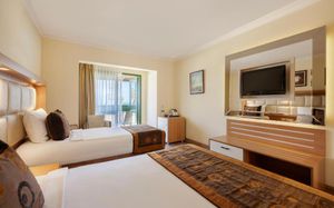 Территория отеля красивая, зелёная, ухоженная. Пляж состоит из 3-х зон, лежаков всегда хватает. Есть пирс, с которого можно нырять. Питание разнообразное, вкусное. Кормят целый день. В номере убирали хорошо, за оставленный доллар делали фигурки на кровати.