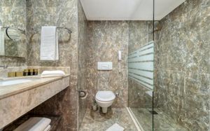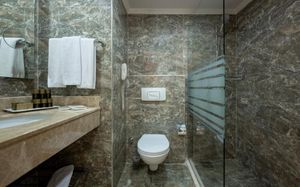 Звуковые подсказки Тактильные знаки Подсказки на языке Брайля Шнур/кнопка вызова помощи в ванной Низкая раковина Высокий туалет Туалет с поручнями Подходит для гостей в инвалидных креслах Лестница для доступа к верхним этажам
