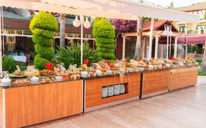 Рестораны a la carte/шведский стол:Турецкий ресторан, Рыбный ресторан, часы работы 19:00-20:00 Необходима предварительная резервация Возможно одно бесплатное посещение одного из ресторанов (при проживании от 7 ночей) Рестораны работают 15/05 по 30/09