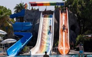 Открытый бассейн с пресной водой (без подогрева) Открытый бассейн с водными горками (без подогрева) 1 крытый бассейн с пресной водой, площадь 90 кв.м 3 водные горки, часы работы 10:30-12:00, с 14:30-16:00