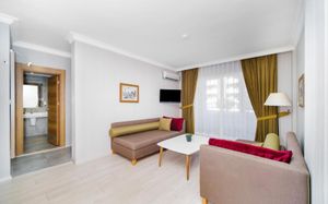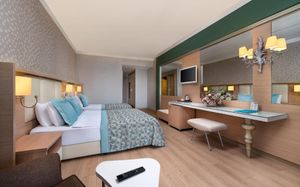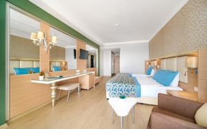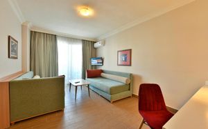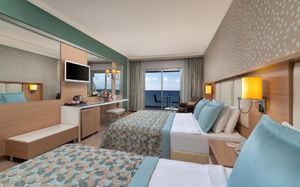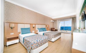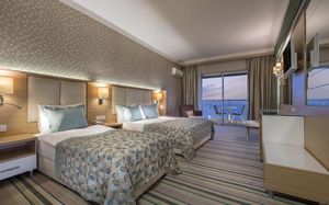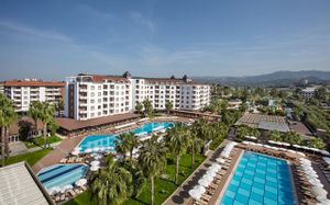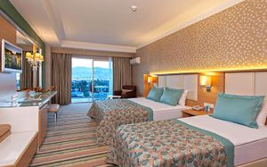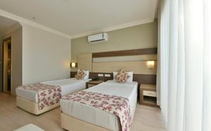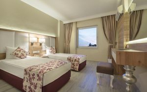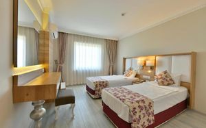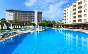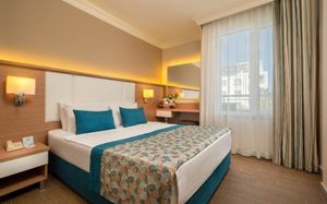 Читала отзывы о данном отеле на всех сайтах, в итоге ни один плохой отзыв не подтвердился! Отель превзошел ожиания! Wi-fi на всей территории отеля, в том числе в номерах. Прекрасный большой песчано-галечный пляж. В отеле запрещено занимать лежаки. Жаль, что не все прислушиваются к этому правилу, но все же в любое время можно было найти свободный лежак и даже три рядом. Вкусная и разнообразная еда в ресторане. Если приходить в открытию ресторана, то могут быть очереди за едой, но если приходить чуть позже, то очередей нет. Официанты быстро убирают столы, меняют скатерти при необходимости, раскладывают приборы, даже приносят напитки. Доп услуги в отеле не навязывали. Пляжные полотенца мягкие, приятные. Широкий ассортимент алкогольных напитков. В отеле отдыхает много пенсионеров и это прекрасно: они не шумят и не доставляют неудобств. В баре готовят кофе по-турецки, очень жаль, что я узнала об этом перед отъездом. Персонал понимает ходовые фразы на русском, в основном говорят на английском. У нас был номер на 5 этаже, с видом на бассейн. С открытой балконной дверью очень шумно от дороги, но шумоизоляция очень хорошая - с закрытой дверью полная тишина. Отличные шторы блэкаут.