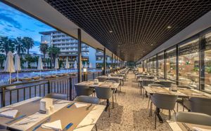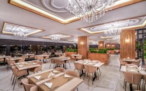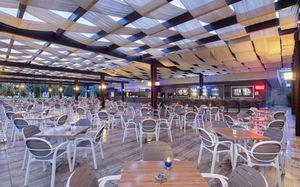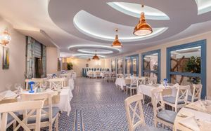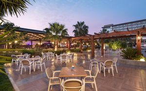 Рестораны a la carte/шведский стол:Lagos Restaurant – Рыбный Ресторан La Pergola Restaurant – Итальянский Ресторан Sakura Restaurant – Китайский Ресторан Шашлычная – Кебаб Хаус Часы работы 19:00-21:00 Необходима предварительная резервация Возможно одно бесплатное посещение одного из ресторанов (при проживании не менее недели) Рестораны открыты с 1 апреля до 15 ноября