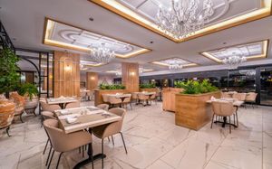 Бары:Angels Бар (Лобби) 10:00 - 24:00 Bar de Rouge (Лобби) 08:00 - 24:00 White (Диско) Бар 22:00 - 24:00 Garden Бар ( Бассейн) 10:00 - 24:00 Пляж Бар 10:00 - 18:00 Бистро Royal 21:00 - 07:00