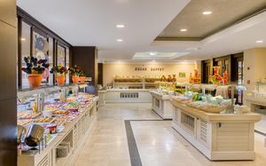 Расписание работы основного ресторана: Завтрак 07:00-10:00, поздний завтрак 10:00-10:30, обед 12:30-14:00, ужин 19:00-21:00, поздний ужин 23:30-00:00. Мини-буфет 00:00-06:00. Шведский стол