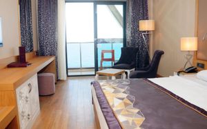 Во всех номерах в распоряжении гостей телевизор с плоским экраном и спутниковыми каналами, кондиционер и балкон с видом на море или территорию отеля. Собственная ванная комната с душем укомплектована феном, бесплатными туалетно-косметическими принадлежностями и мини-баром.